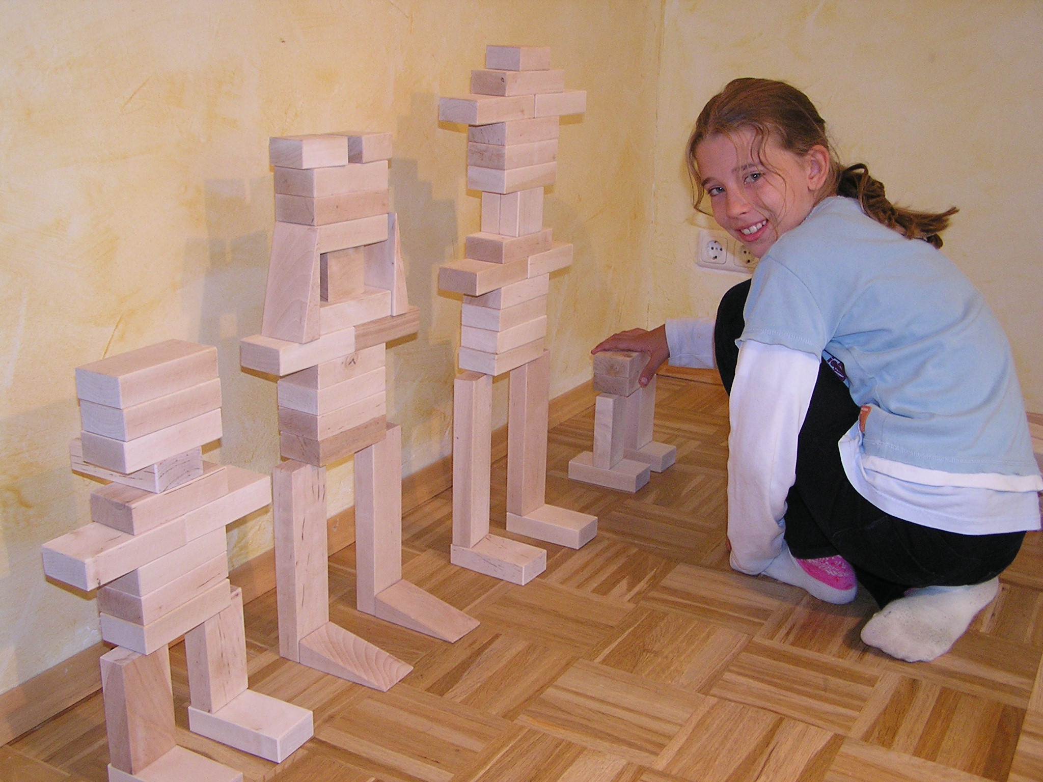 "Bei uns sind seit ca. vier Jahren die Steine im Einsatz, sie sind mit den drei Kindern mitgewachsen. Nun ist der älteste Sohn schon zehn Jahre alt und er spielt jedes Wochenende mit seinen Geschwistern mit den Steinen. Kein anderes Spielzeug schafft es, einen zehn-, sechs- und vierjährigen zu vereinen und jeder baut auf seinem Niveau ...... wow, wir haben ca. 300 Stück und die werden wir auch aufheben für die Enkel in vielleicht 20 Jahren. Danke für diese tolle Spielidee!!!"